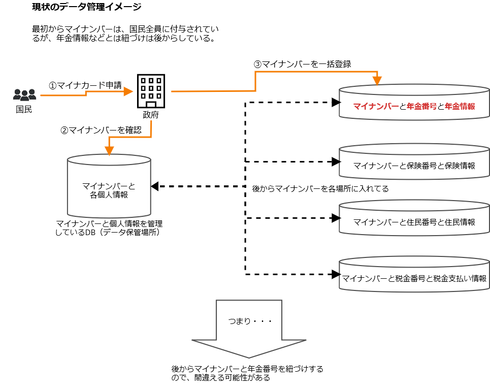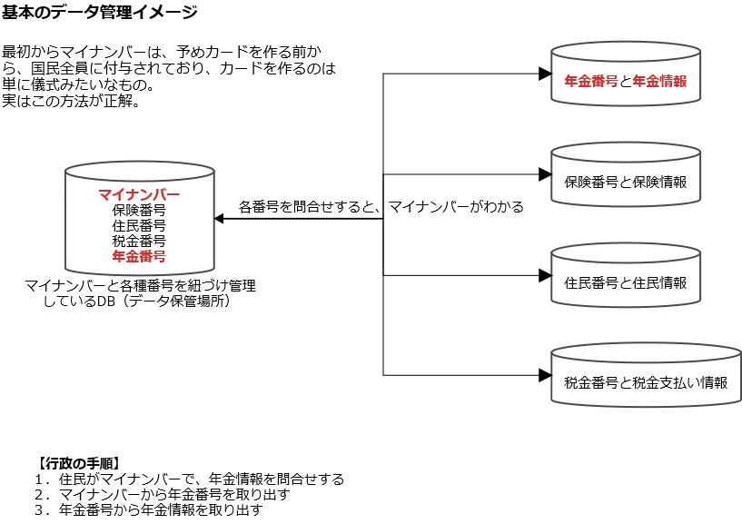ちなみに、感の良い人ならわかるかもしれませんが、上記の「基本データ管理イメージ」でも、マイナンバーをする意味があまりないのです。
